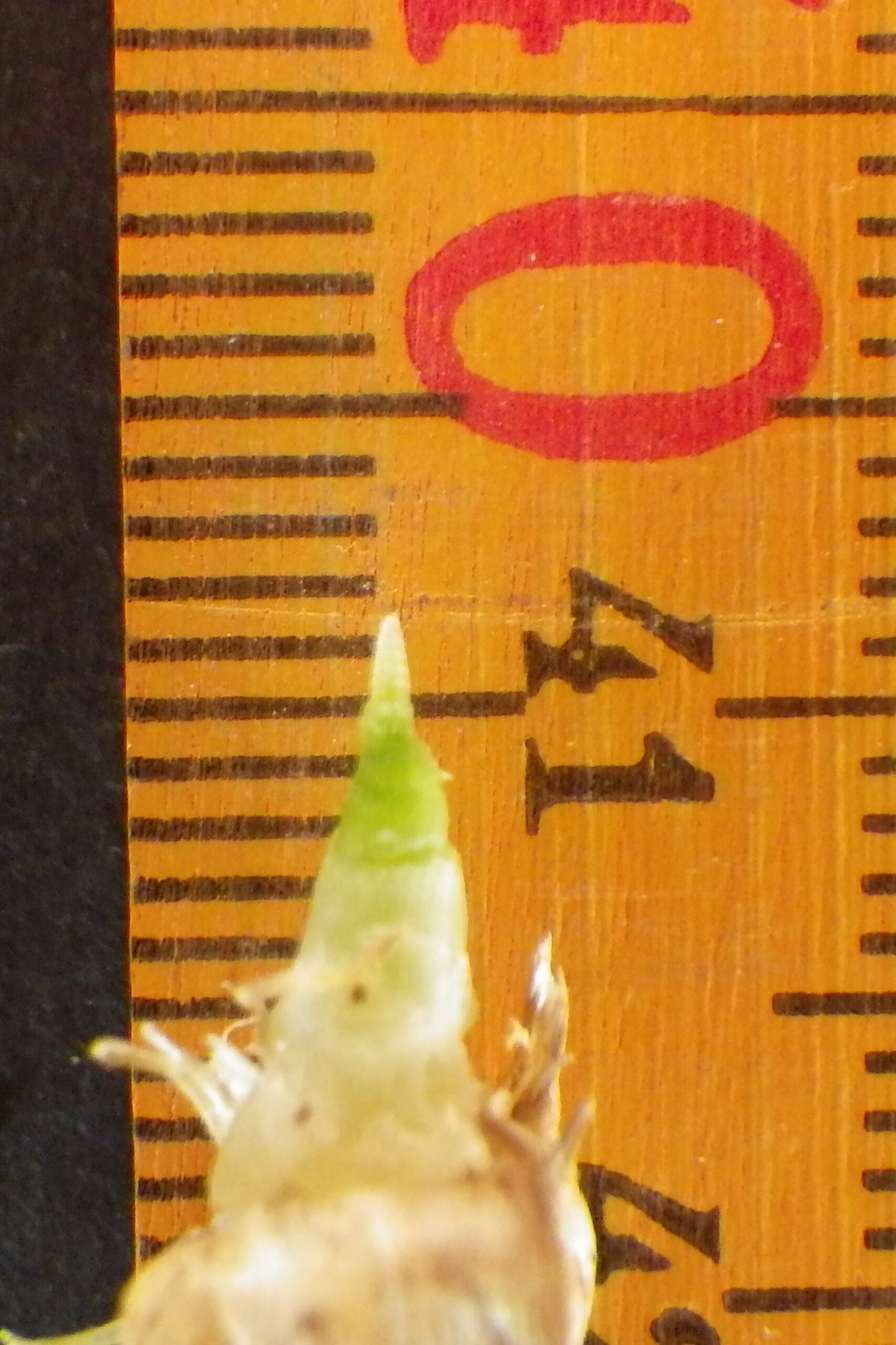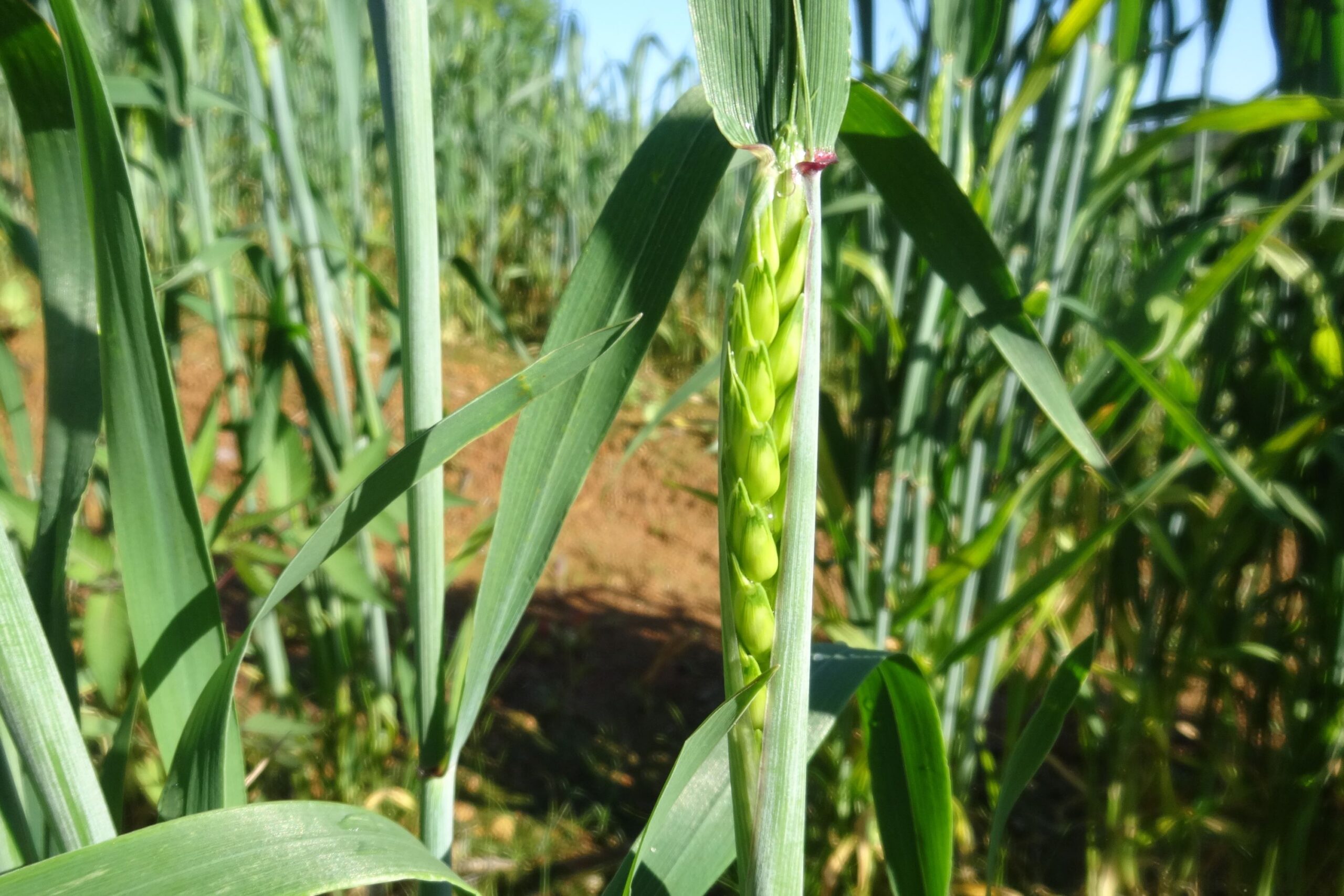 出穂とは、葉鞘(ようしょう)から小麦の穂が顔を出すこと。この穂は、3月に入った頃に茎の先端に形成される幼穂(ようすい)と呼ばれる小さな小さな穂の赤ちゃんが葉鞘に包まれた中で大きくなっていったもので、生まれたての幼穂は1mmにも満たないのですが、写真のようにちゃんと小麦の穂の形をしているのが、なんともかわいらしいです。