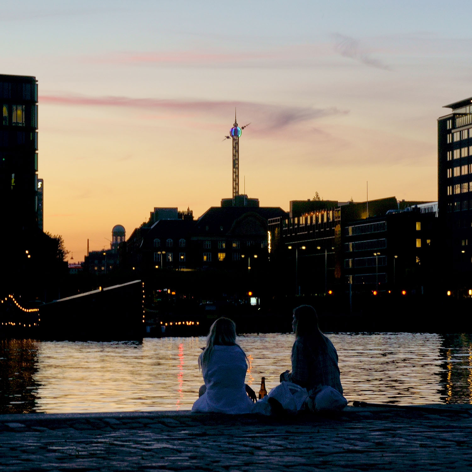 7月のデンマークは、北欧独特の夏らしい、やわらかい光と澄んだ空気に包まれます。圧巻は、夕方から深夜近くまでゆっくり進む黄昏。桃や橙に染まった空が3、4時間かけて青みを帯びていく優しく美しい夏の夕べには、芝生や水辺でくつろいだり、散歩をしたり、ドリンクや食事を楽しんだり、さまざまな屋外でのくつろぎの形が存在します。