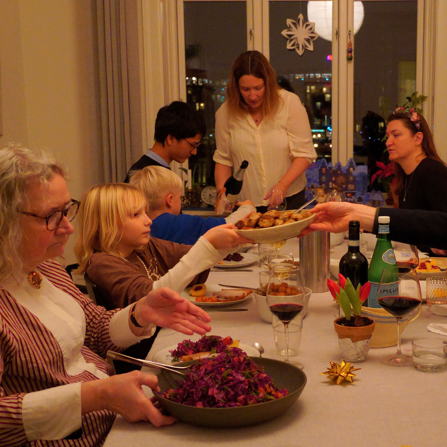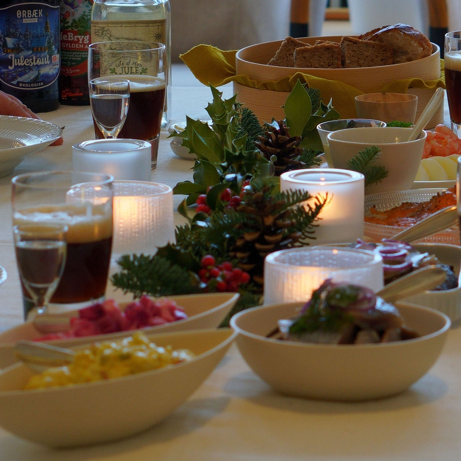 この祝膳に欠かせないのも、デンマークのライ麦パン「ロブロ」。黒子のようにクリスマスの祝宴を支えます。献立は家庭ごとに決まっていることが多く、10人を軽く超える祝膳への負担がホストに偏らないように、持ち寄りにするのが最近のスタイルです。おばあちゃんが仕込むにしんのマリネ、アクセルおじさんのロブロ、ソフィアおばちゃんのレバーパテなど、年に一度、自慢の一品を味わえる喜びがあります。
