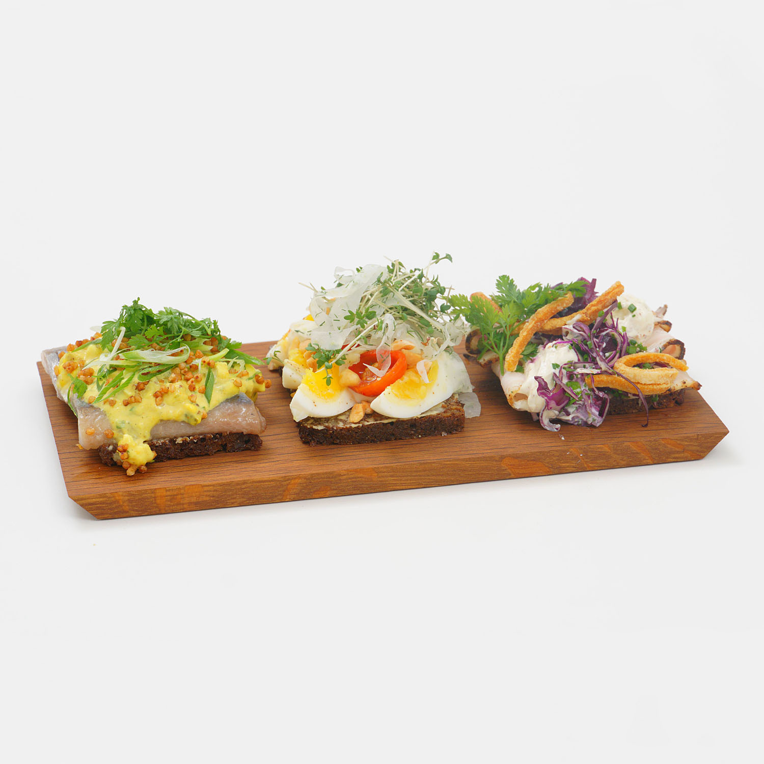 お別れに使うスメアブロは、持ち寄りのロブロと自家製の保存食品で村のおかみさんが集まって用意した時代を経て、地元のスメアブロ屋や肉屋に注文してお別れ会の会場に届けてもらうスタイルや、教会に近い食堂や旅籠屋でスメアブロをふるまう文化が生まれました。近年、お別れ会にスメアブロをふるまう慣習が簡略される傾向にありますが、スメアブロが用意されることで、思い入れや温かさを感じる人は多いようです。何層にも美しく重ねられたスメアブロはテーブルに着席する会で使われ、ナイフとフォークで一口大にすべてのパーツが一緒に口に入るように切り分けながらいただきます。立食の場合、手で食べやすい大きさや飾り方に工夫されます。お別れ会への参加者は故人と縁があった人々なので、お互いの見識がないこともよくあります。故人に想いを寄せて共に過ごす数時間は、ロブロをベースにしたスメアブロが会話を潤滑にする役割や心に温かさを添える役割を担います。昔から受け継がれてきたロブロが紡ぐ、穏やかで清らかな、美しいひとときです。