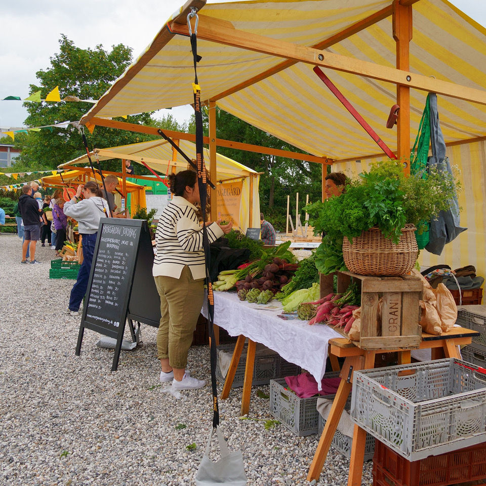 8⽉初旬には⼩さなプラムが店頭に並び始め、下旬には早⽣のりんごが登場します。いちご、ラズベリー、すぐりと続いたベリー類も、ブラックベリーがたわわに実る頃には、秋の気配が感じられるようになります。郊外では、刈り取った⻨のブロックが積まれている光景をあちこちで⽬にするようになり、いんげん、ズッキーニ、カリフラワー、キャベツ、フェンネル、不断草、ほうれん草など、店頭に並ぶ野菜も国産がほとんどを占めるようになります。