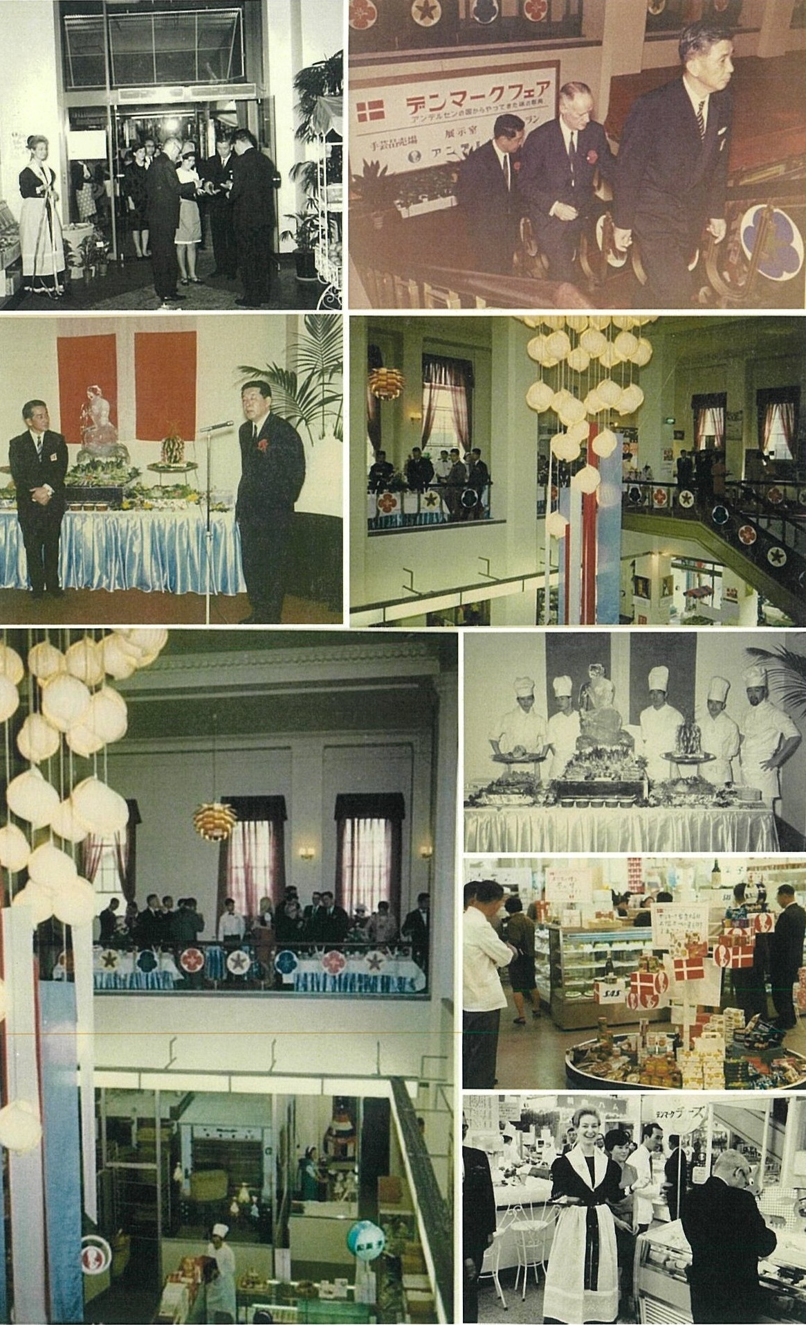 駐日デンマーク王国大使、永野広島県知事のテープカットにはじまったフェアは、2階のレストラン・リンドで、大使館主催のレセプションパーティからスタート。店の内外は、デンマーク一色に彩られ、国旗、人形、ポスター、家具等で飾り付けられました。デンマークからの輸入商品は、クッキー、バター、チーズ、魚類の缶詰、瓶詰、そして、テーブルクロス、ナフキン、食卓用品も販売され好評でした。