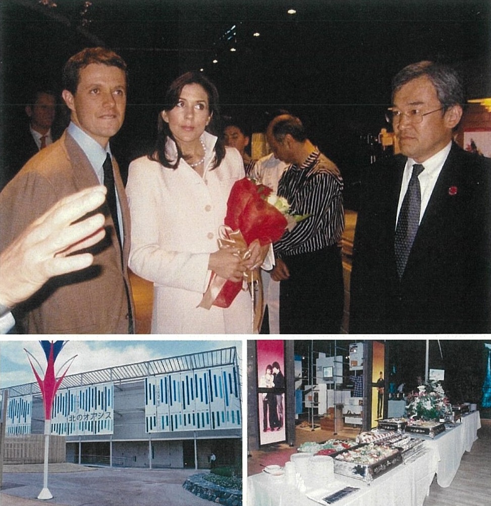 2005年、愛知県で開催された「愛・地球博」のデンマークナショナルデー(4/20)には、フレデリック皇太子殿下・メアリー妃殿下がご来臨。北欧共同館内のアンデルセンでレセプションが開かれ、髙木誠一社長(当時)がご案内いたしました。