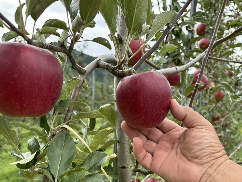 そしてファームでは、3品種・約5,000本のりんごの受粉を助けるために、小さな姫りんごのドルゴクラブ(クラブアップルの一種)も育てています。春に白い花、夏に赤い実をつけ、ミツバチが花粉を運ぶことで受粉を支える大切な存在。香りと甘酸っぱさが感じられる品種で、りんごづくりを陰で支える頼もしい仲間です。