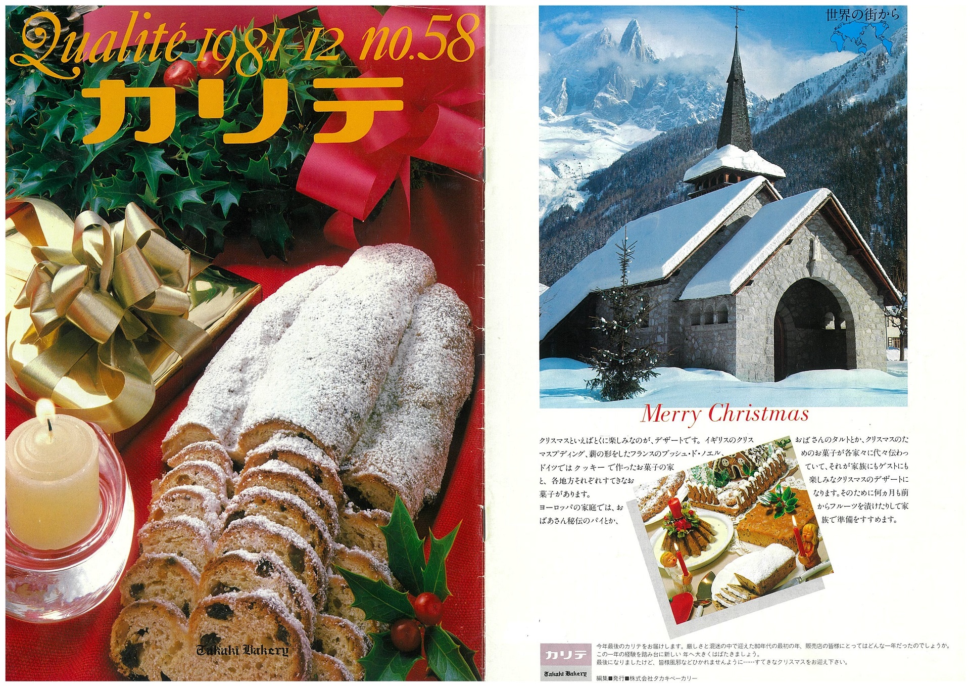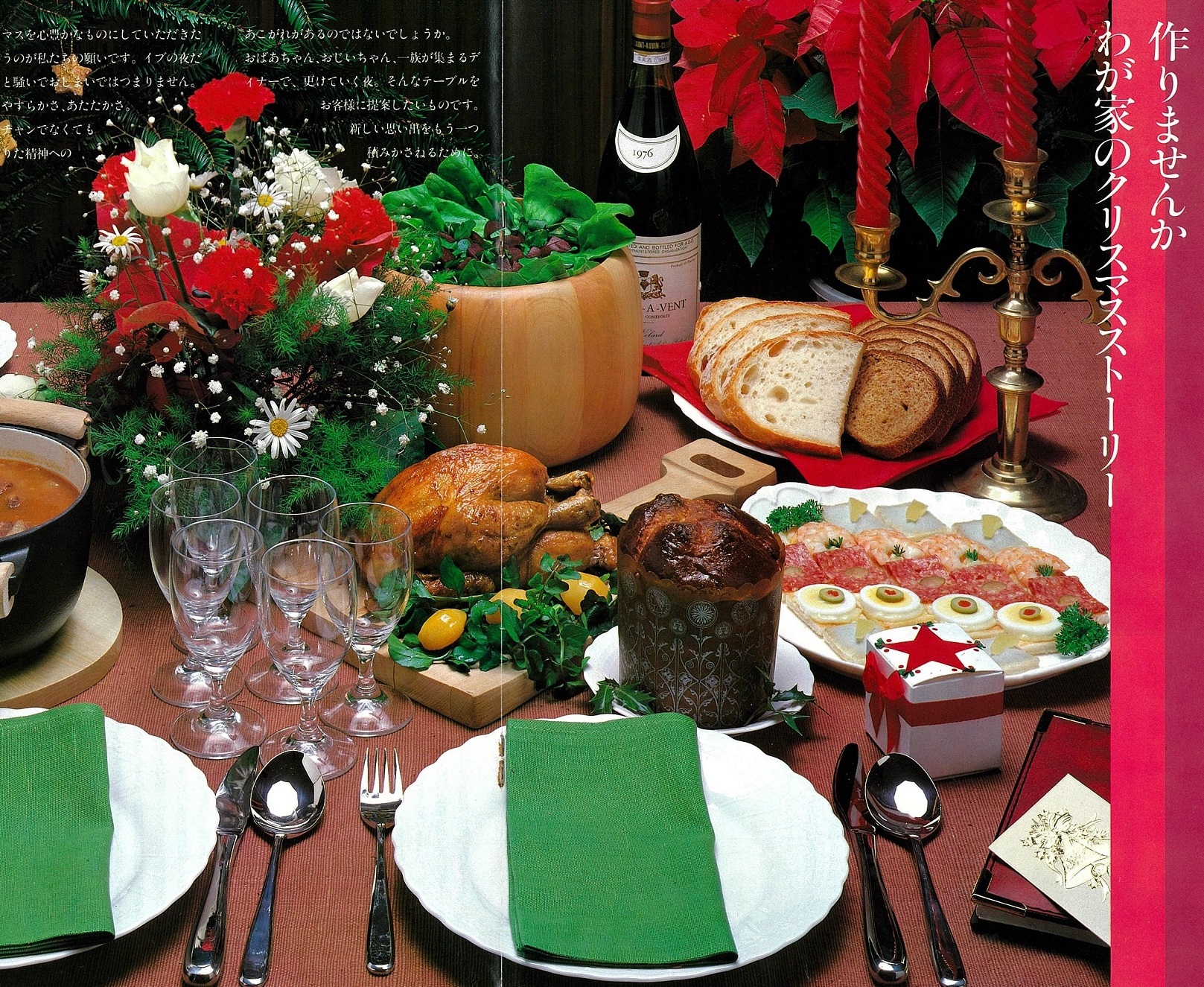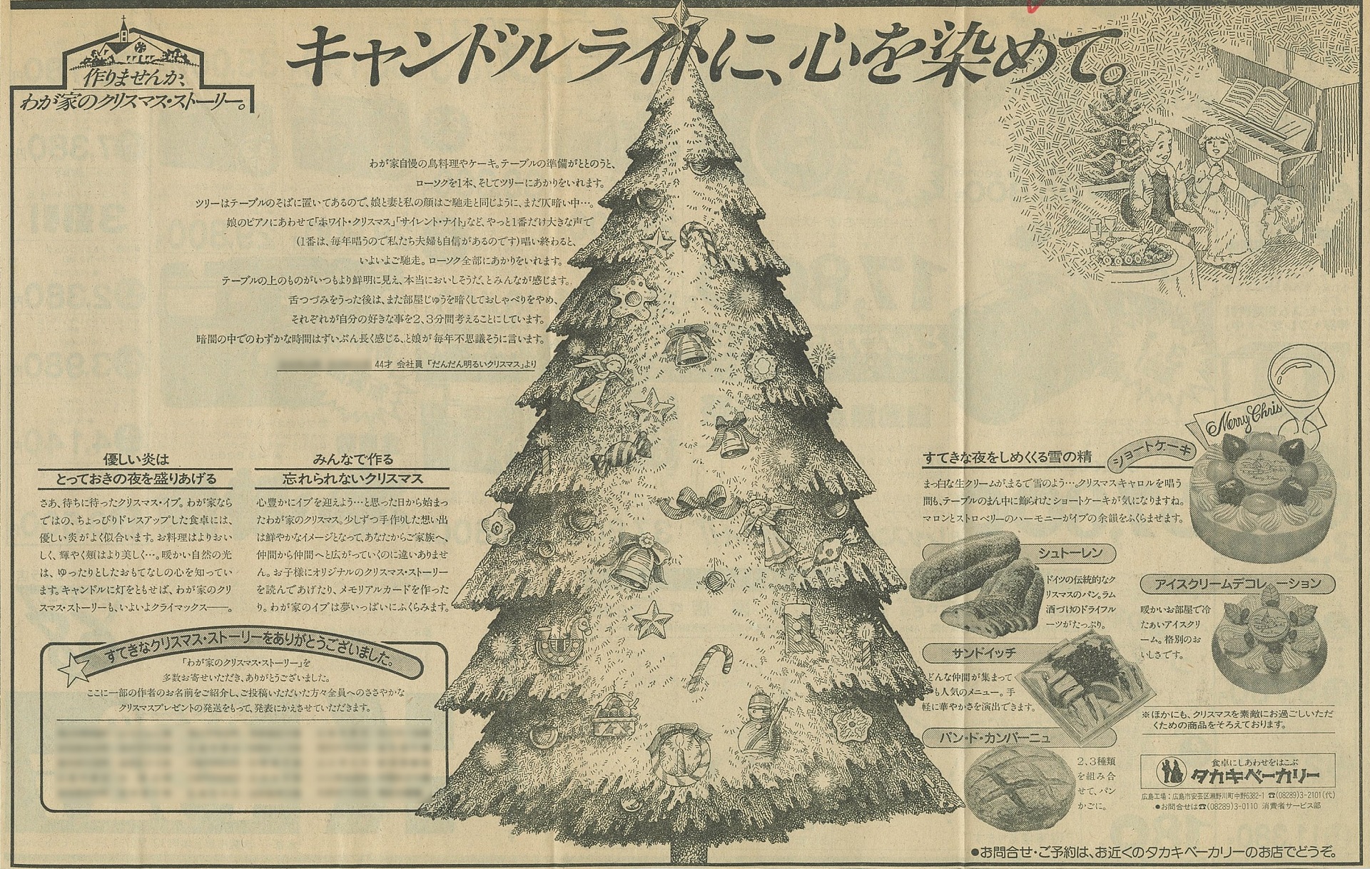 「クリスマスを心豊かなものにしていただきたいというのが私たちの願いです。イブの夜だけパッと騒いでおしまいではつまりません。静寂なやすらかさ、あたたかさ。クリスチャンでなくてもみちたりた精神へのあこがれがあるのではないでしょうか。おばあちゃん、おじいちゃん、一族が集まるディナーで、更けていく夜。そんなテーブルをお客様に提案したいものです。新しい思い出をもう一つ積みかさねるために。」1981年、この提案をできれば企業からの一方通行に終わらせたくないことから、広くお客様に対して「わが家のクリスマス・ストーリー」を募集しました。<販売店機関誌「カリテ」No.58 1981年12月号より>