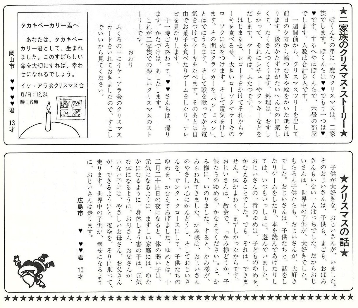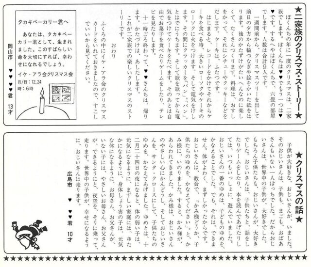 11月から募集を始めた「わが家のクリスマス・ストーリー」。12月10日の締め切り日までに425作品が寄せられました。小学生からお年寄りまで、どれも心温まる作品ばかりです。その中から、2つのストーリーをご紹介します。<社内報アオムギNo.182 1981年12月25日>