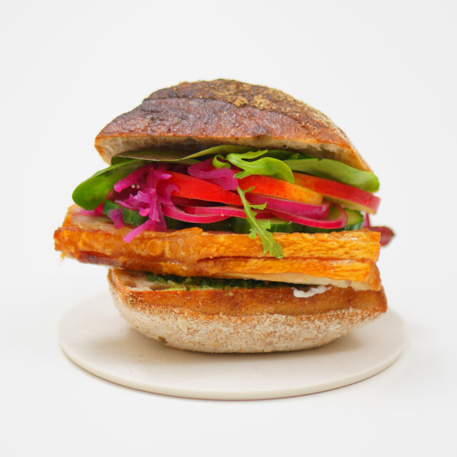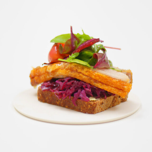 フレスケスタイはしっとりジューシーな焼き加減とカリカリに焼けた背脂のコントラストが身上。温かい料理として、スメアブロとして、サンドイッチとして、デンマークの味覚を語る上で欠かせない一品です。