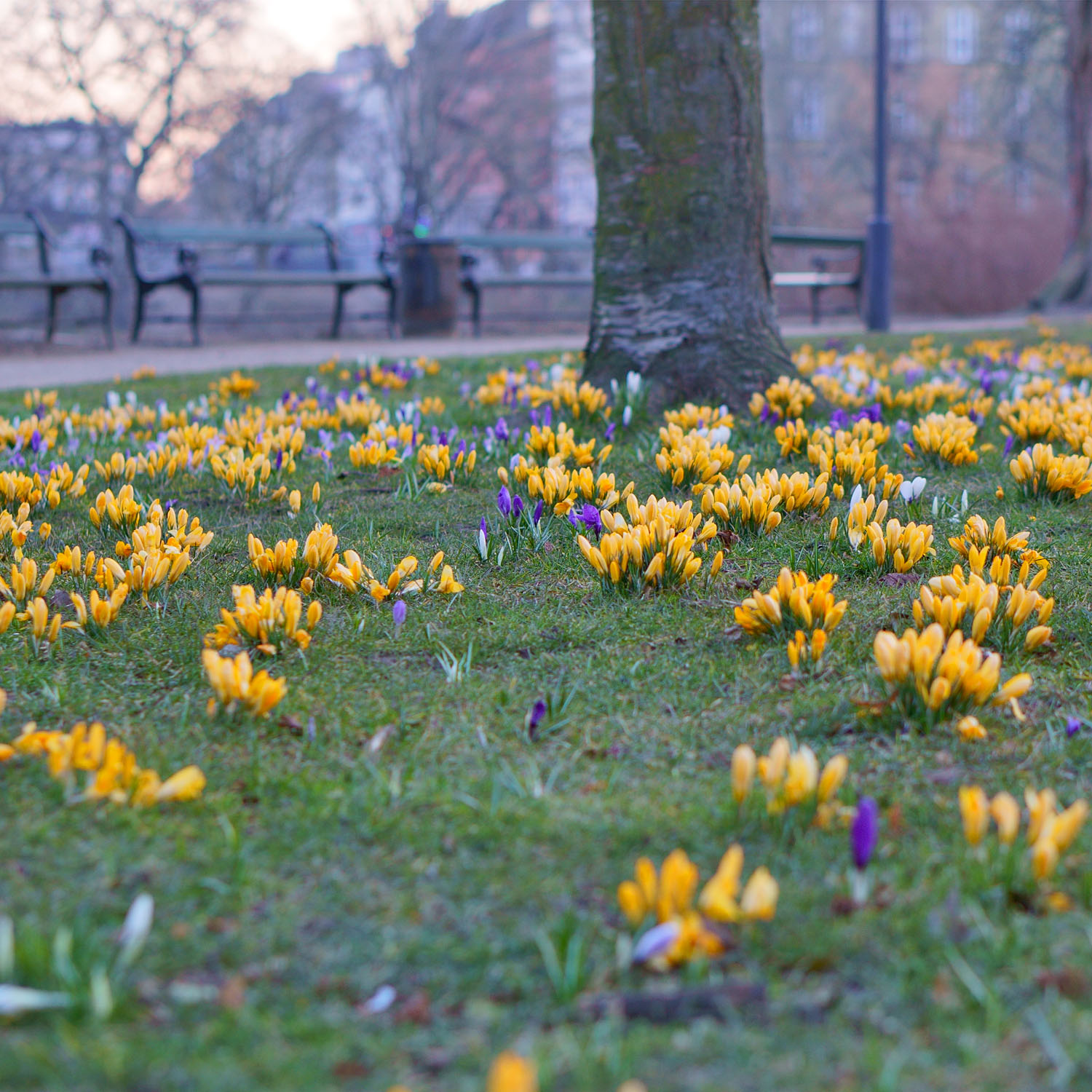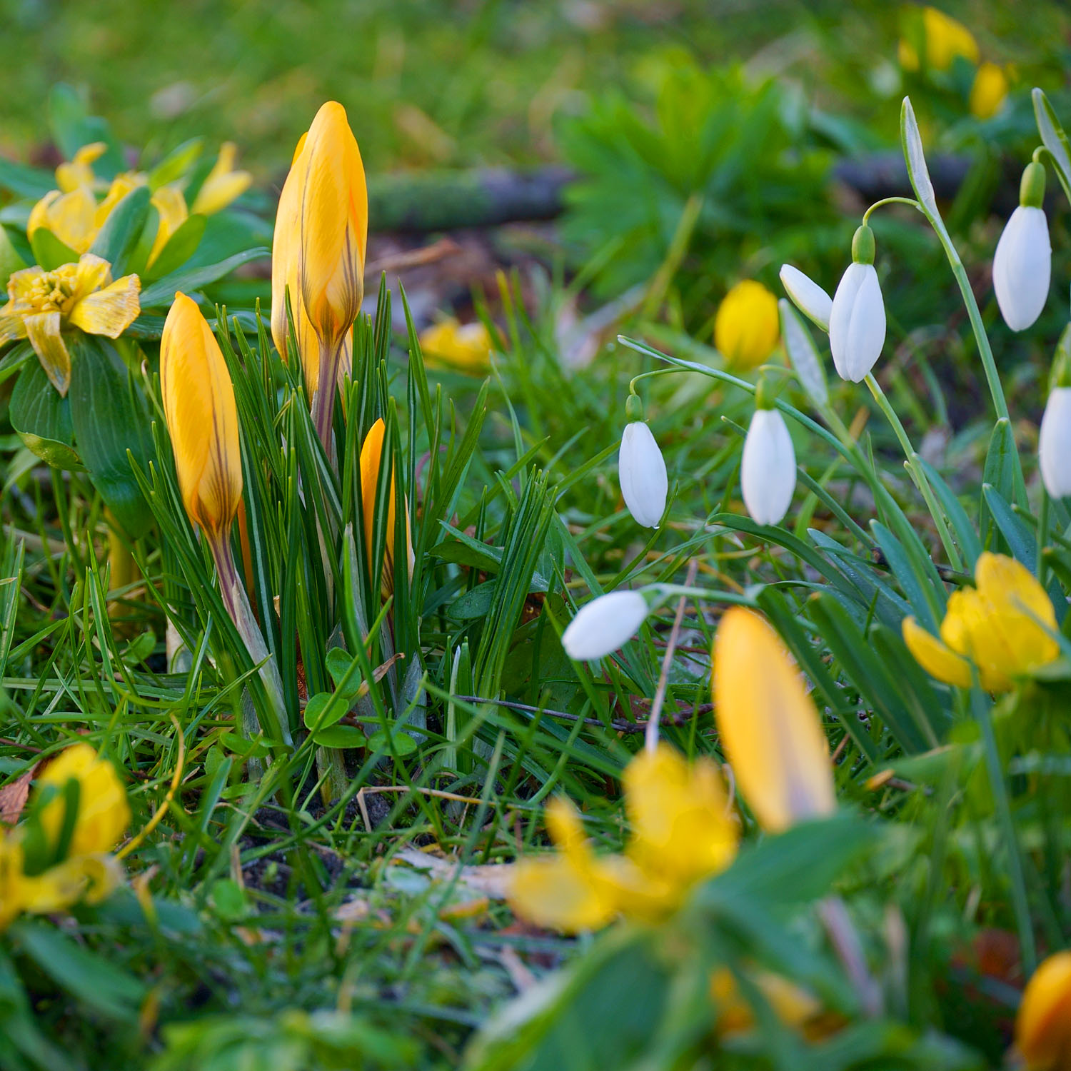 4月下旬になると、梅の花に似たミラベルの花が咲き始めますが、3月の庭や芝生を彩るのは、スノードロップやクロッカスといった小さな球根花です。その可憐な姿は、遠い春が確かにこちらへ向かっていることを知らせてくれる、小さな春の妖精のようです。