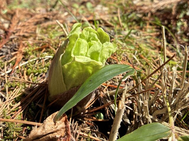 芸北100年農場の冬は例年、積雪と厳しい寒さに見舞われますが、今年は暖かく、雪が降ってもすぐに解けていきました。このまま春を迎えるかと思いきや、3月にはまた雪が降り、季節が行きつ戻りつするような日々となりました。農場の麦は、雪解けのたびに顔をのぞかせては再び雪に埋もれながらもたくましく育っています。春を告げる蕗の薹(ふきのとう)も顔を出し、ブルーベリーも芽吹いています。農場には、例年より1か月早く春が訪れました。